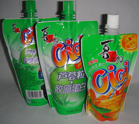 我公司生產的這種包裝袋有多種名稱:帶嘴包裝袋,裝嘴包裝袋,液體包裝袋,塑料嘴包裝袋,裝嘴液體包